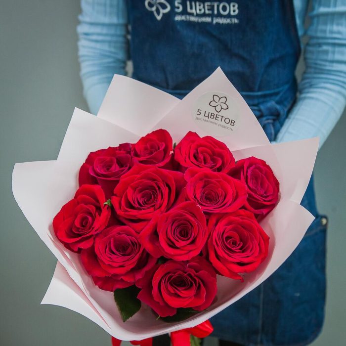 розы – 11 шт.Атласная лента – 1 шт.Матовая пленка – 1 шт.