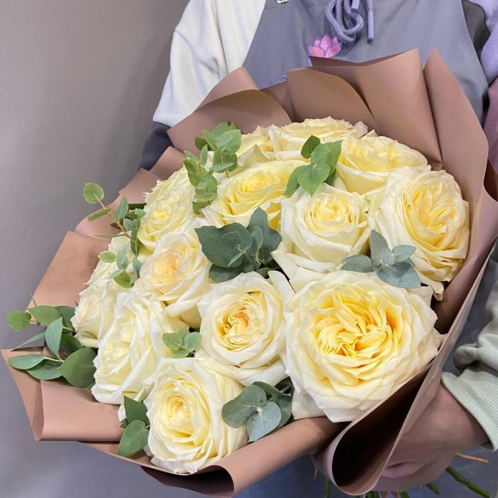 Букет из 15 пионовидных роз "MANSFIELD PARK"