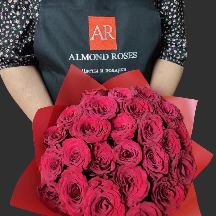 Букет из 25 красных роз. Букет 127 ALMOND ROSES