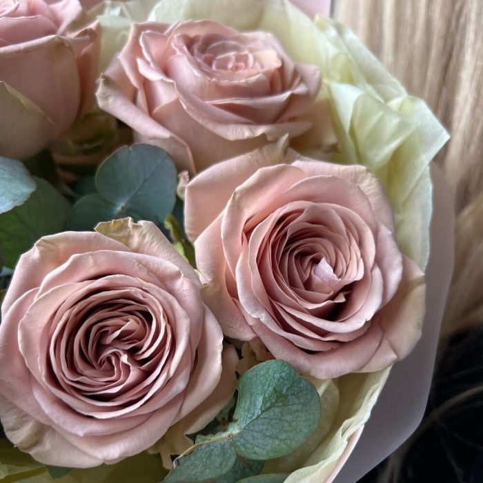Букет премиум «Пудровая Роза с эвкалиптом»