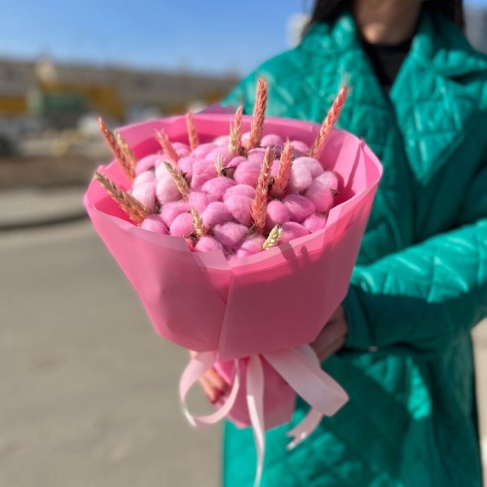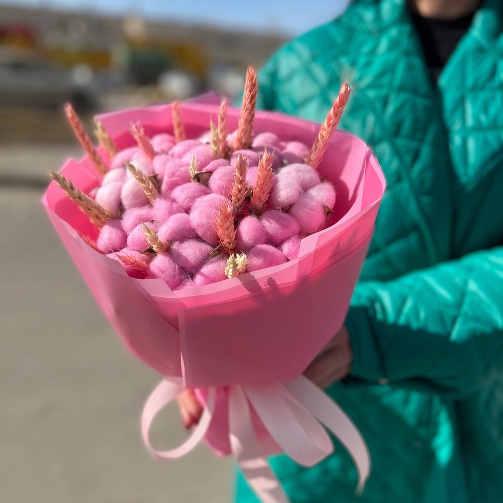 Хлопок – 11 шт.Лента атласная – 1 шт.Пшеница – 20 шт.Упаковка дизайнерская – 7 шт.